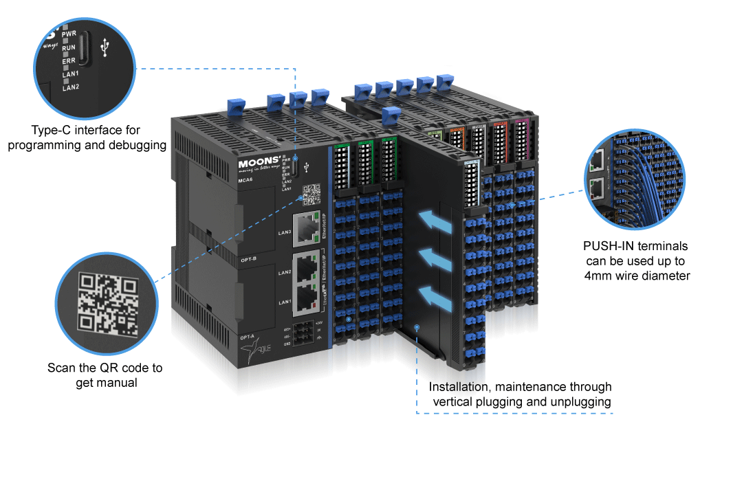 PLC Moons MCA6 tích hợp nhiều phương thức truyền thông khác nhau